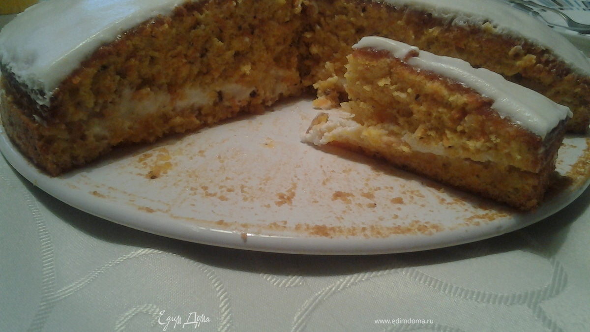 Взбить яйца с сахаром до белой пены. В яйца с сахаром добавить разрыхлитель, муку, орехи и морковь. Все тщательно перемешать. - Шаг 3