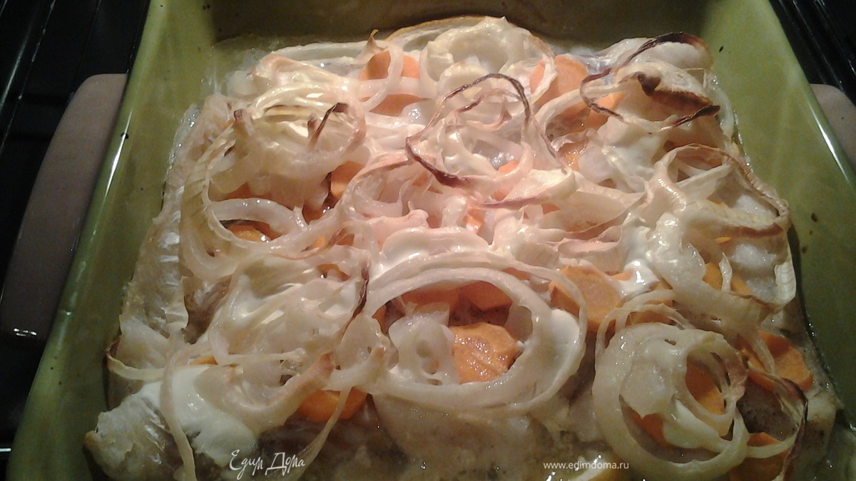 Выложить лук и морковь на рыбу. - Шаг 3