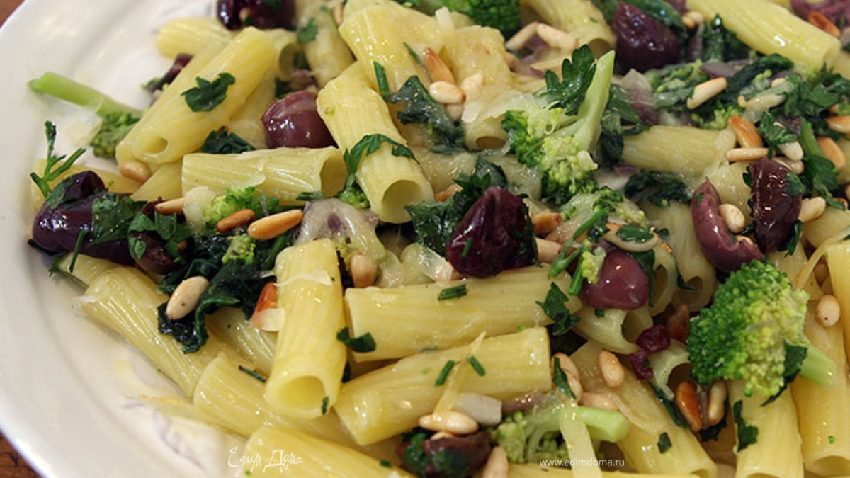 Макароны с брокколи и шпинатом