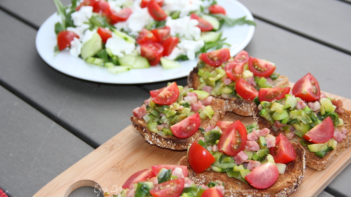 Такая брускетта хорошо подойдет в качестве закуски или перекуса))) Вкусно, быстро и просто)