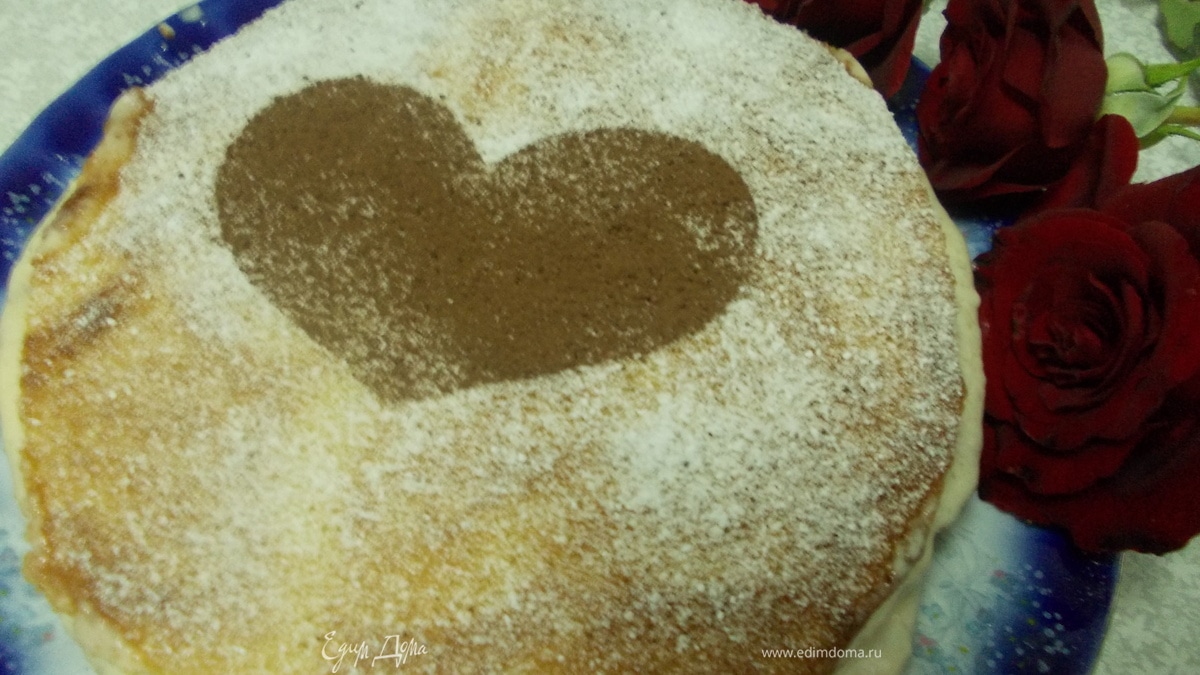 Каждый корж смазываем кремом. Я сверху посыпала пудрой и сделала сердце. Торт получился очень вкусным, приятного аппетита.