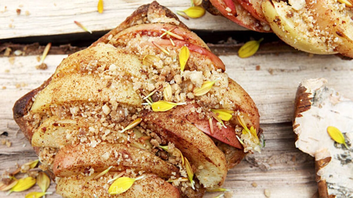 - Шаг 2Положите яблочные дольки на кусочки Шведских хлебцев Fazer, используя свою фантазию. Выложите сверху на яблоки массу из овсяных хлопьев и масла таким образом, чтобы она покрыла весь хлеб.