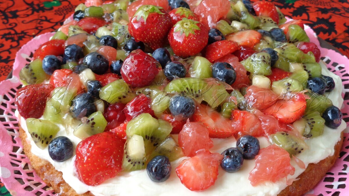 Воздушный, пропитанный бисквит, легкий крем из маскарпоне и много фруктов и ягод в качестве украшения. ![]()