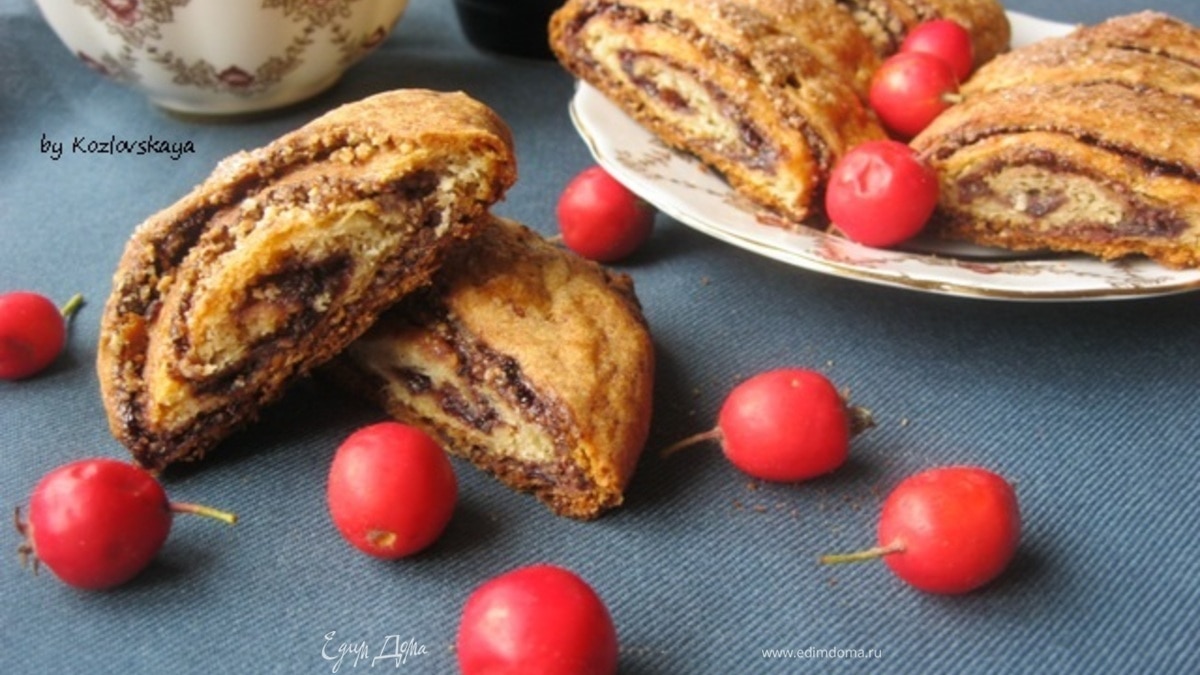 Оставшиеся два кусочка теста раскатать аналогично. Смазать вареньем , посыпать натертым шоколадом и рубленными орехами. - Шаг 5