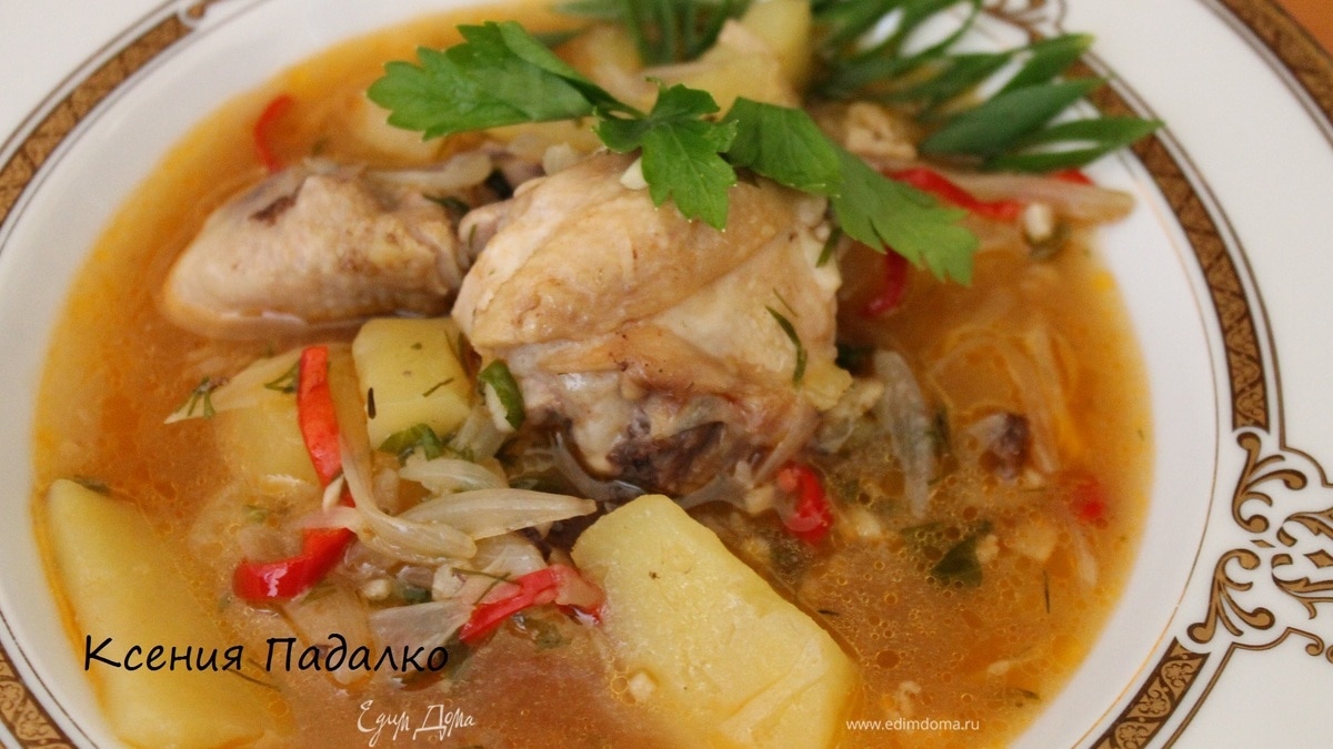 Густой куриный суп с луком