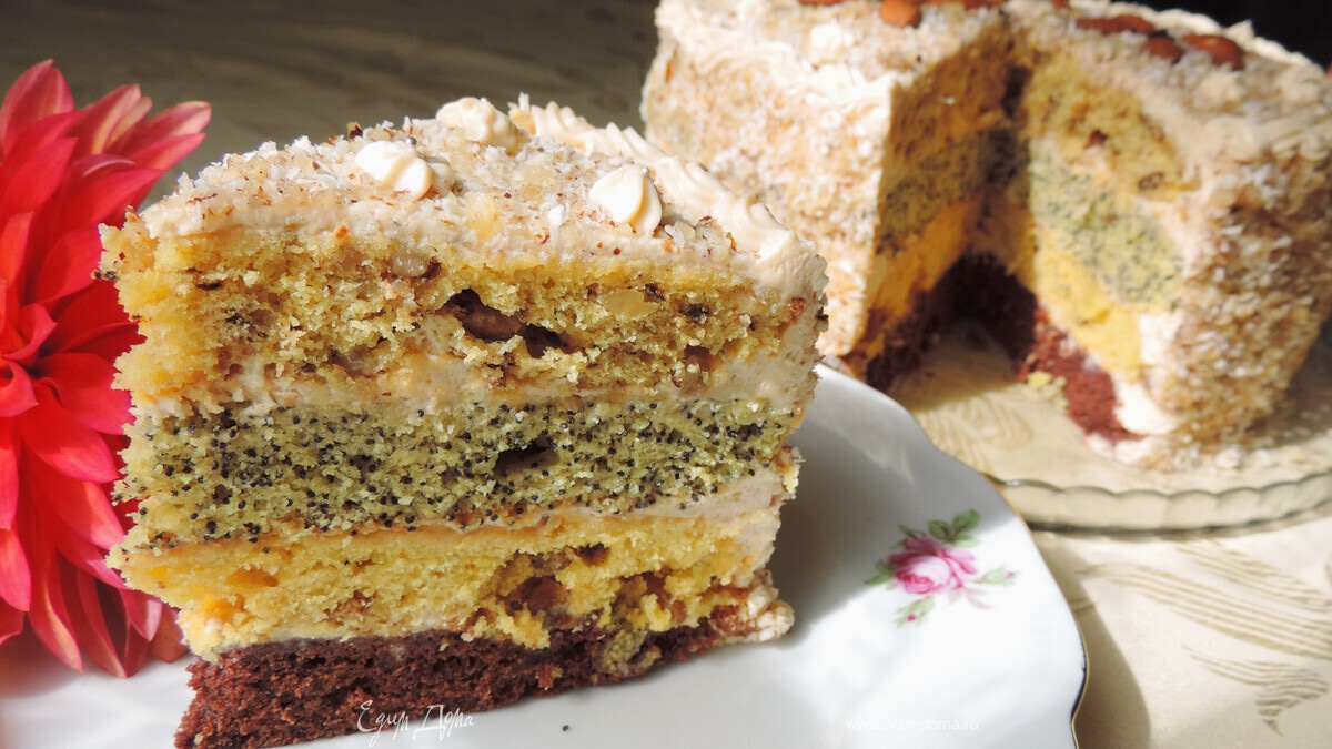Ух ты!! 😃 Надо же, Наташ, я подобный тортик когда то пекла, это мой "коронный торт" был! pooh_lol Только вот слоёв поменьше...3.😌 Очень домашний вкусный и красивый торт у тебя получился!😍😋😍