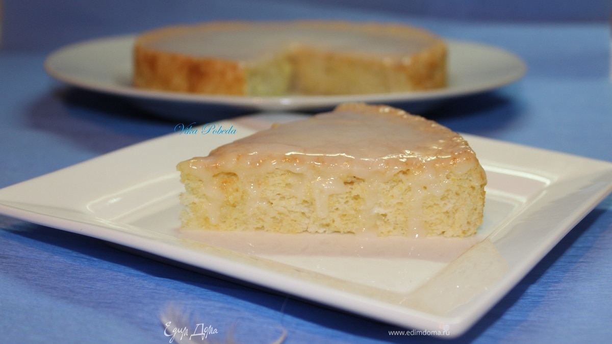 Торт (или пирог) привлек мое внимание использованием белков (накопилось их нужное количество) и кукурузной муки (показалось интересным). В результате воздушный, невесомый влажный бисквит под лимонной глазурью с очень интересной структурой, благодаря смешанной муке.