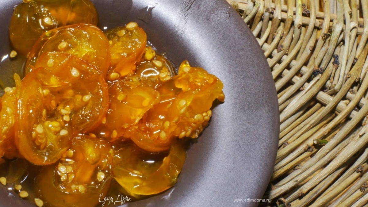 Это варенье было для меня экспириментом, причём довольно удачным. Слышала и раньше, что есть такое варенье, но относилась скептически. Но так как помидоров у меня сейчас довольно много, решила попробовать. И оно оказалось очень и очень вкусным. Из указанного количесва продуктов получилось 4 поллитровые баночки и немного оставила для чая. Помидоры я использовала жёлтые черри, но можно использовать и другие.