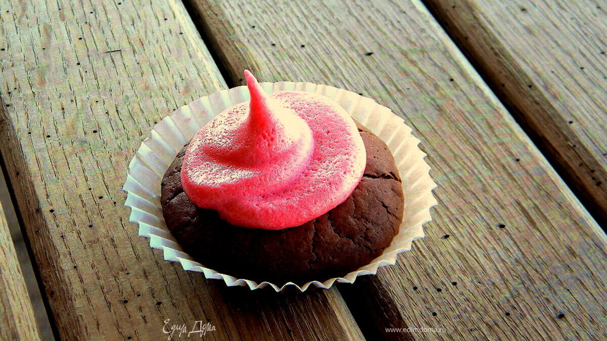 Потом взбиваем холодные белки с сахарной пудрой, по желанию краситель.