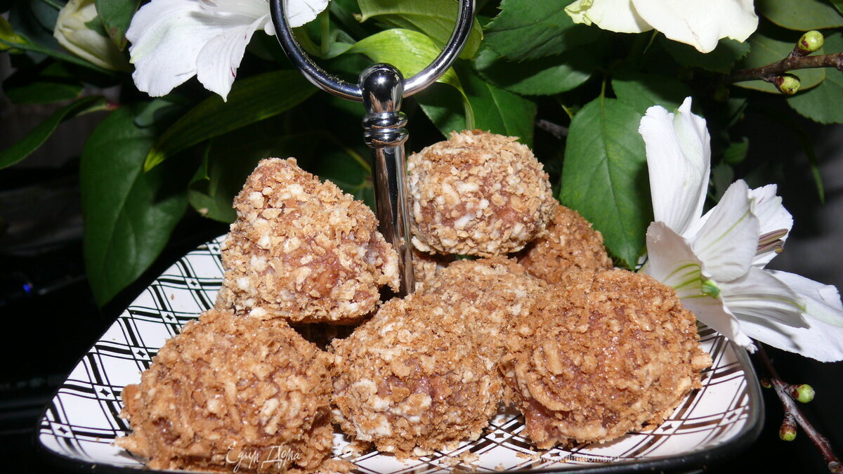 - Шаг 11. Растопить масло+сметана+2,5 стак. муки. Хорошо замешать, подсыпая муку( еще примерно 0,5 стак.) замесить гладкое тесто. 2. Разогреть духовку 170 - 180гр. Чайной ложкой отделять кусочки теста и формовать руками шарики.Выпекать 15-20 минут до золотистого цвета( они хоть и небольшие, но пекутся не быстро).Тесто должно держать форму, не расплываться. Если это происходит - добавить муки. 3.Из сахара, какао и молока сварить глазурь.В конце - 20 гр. масла. Немного остудить. Вафли( надо взять посуше и что бы начинки в них было как можно меньше) натереть на крупной терке. 4.Обмакивать испеченные шарики в глазурь, потом в вафли. Не нужно делать глазурь очень густой.Если она загустевает - добавить молока.