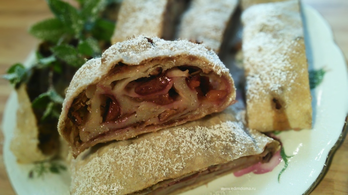 Викуля, очень вкусный ароматный штрудель у тебя!!!😋😋😋 И так много в нём чудесной начинки!!!!😍💐