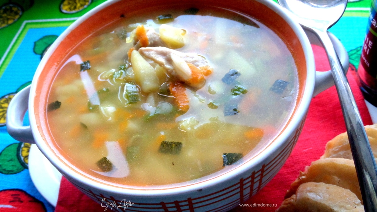 Суп на курочке с овощами и макаронами