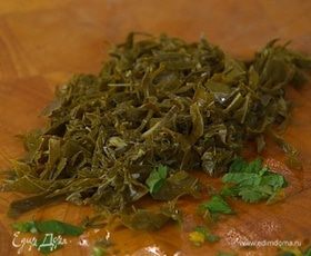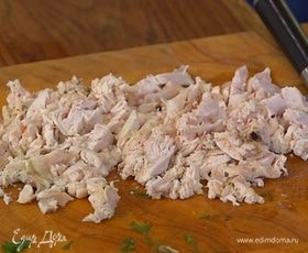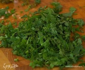 Мяту и кинзу мелко порубить.