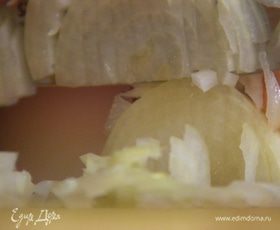 Когда лук станет прозрачным, овощи посолить, добавить измельченный руками перерончино, корицу, гвоздику, все перемешать.