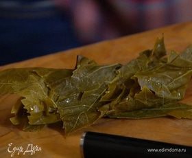 Виноградные листья вымочить в холодной воде, затем промыть и просушить бумажным полотенцем.