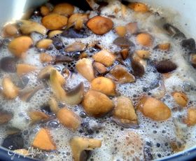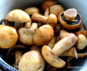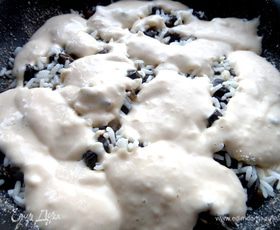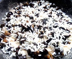 У меня оставалась порция риса и я нашла ей применение! Немного насыпать риса на грибы.
