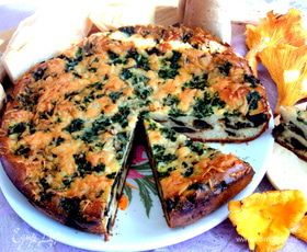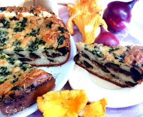Когда остынет,отрезаем кусочек пирога с грибным и сырным ароматом.