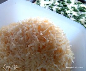 Сыр твёрдых сортов (у меня местный пармезан) натираем мелко...