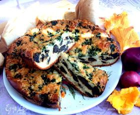 Такой пирог можно испечь и зимой из размороженных грибов и даже вымоченных солёных.