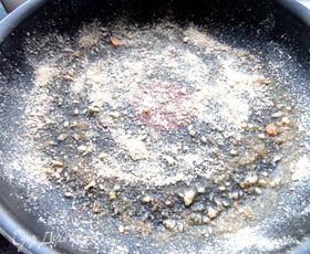 Форму (22 см) смазываем растительным маслом и посыпаем сухарями.