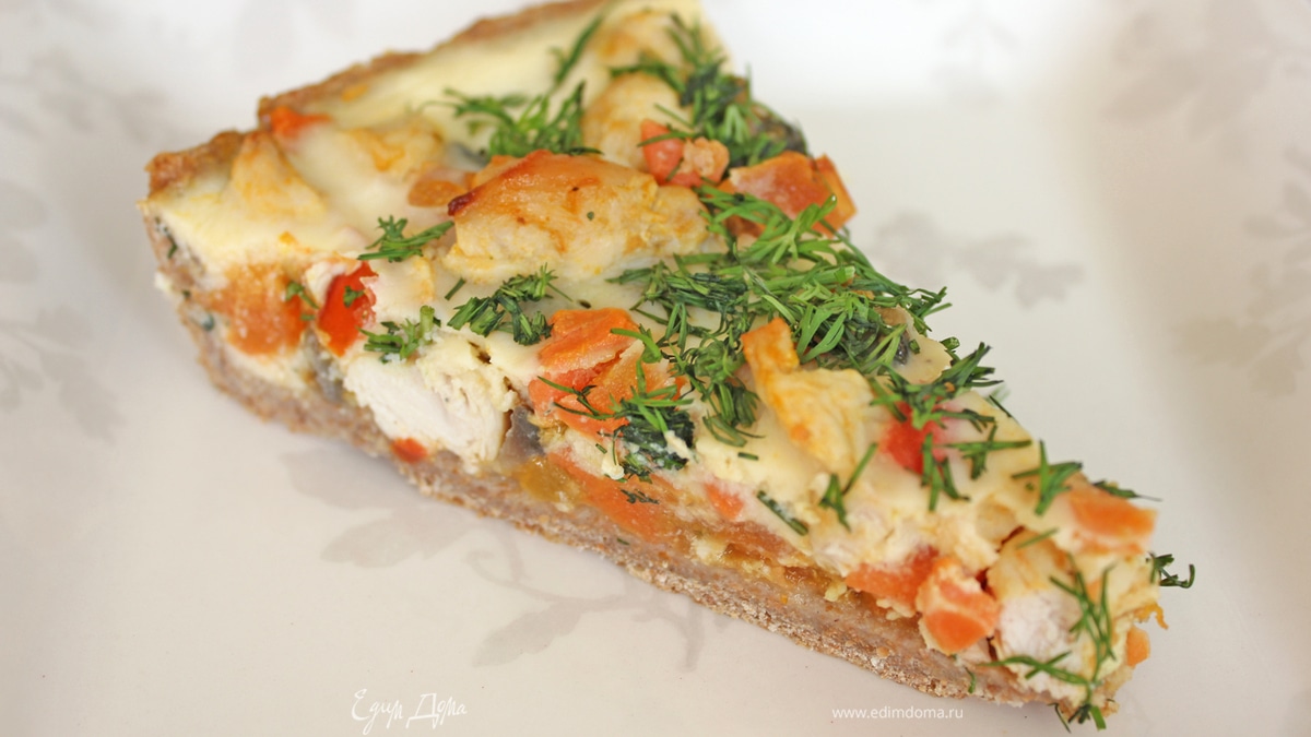 - Шаг 3Для заливки яйца легко взбить со специями, творогом (протертым) и кефиром. Вылить на начинку. Выпекать 20 минут при 180С, потом еще 10-15 минут при 200С. По желанию посыпать зеленью. Можно подавать :) А можно остудить и есть в холодном виде, тоже очень вкусно.