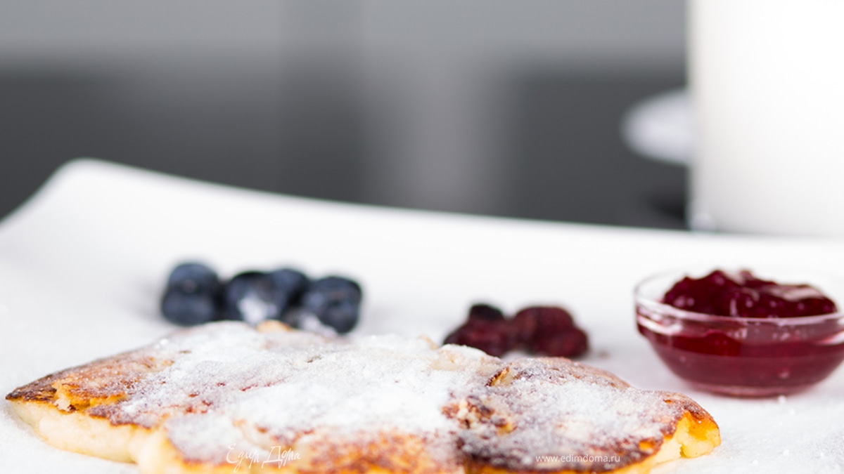 - Шаг 3Снимаем с огня и посыпаем сахарной пудрой и немного корицы. В Тироле к этому блюду всегда подают брусничное варенье. Хотя можно, как вы понимаете, подать с любым вареньем. Часто едят его прямо из сковородки теплым и запивают молоком.