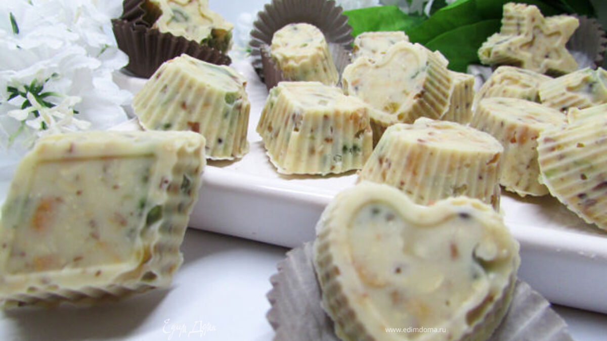 Конфеты из белого шоколада с орешками и цукатами
