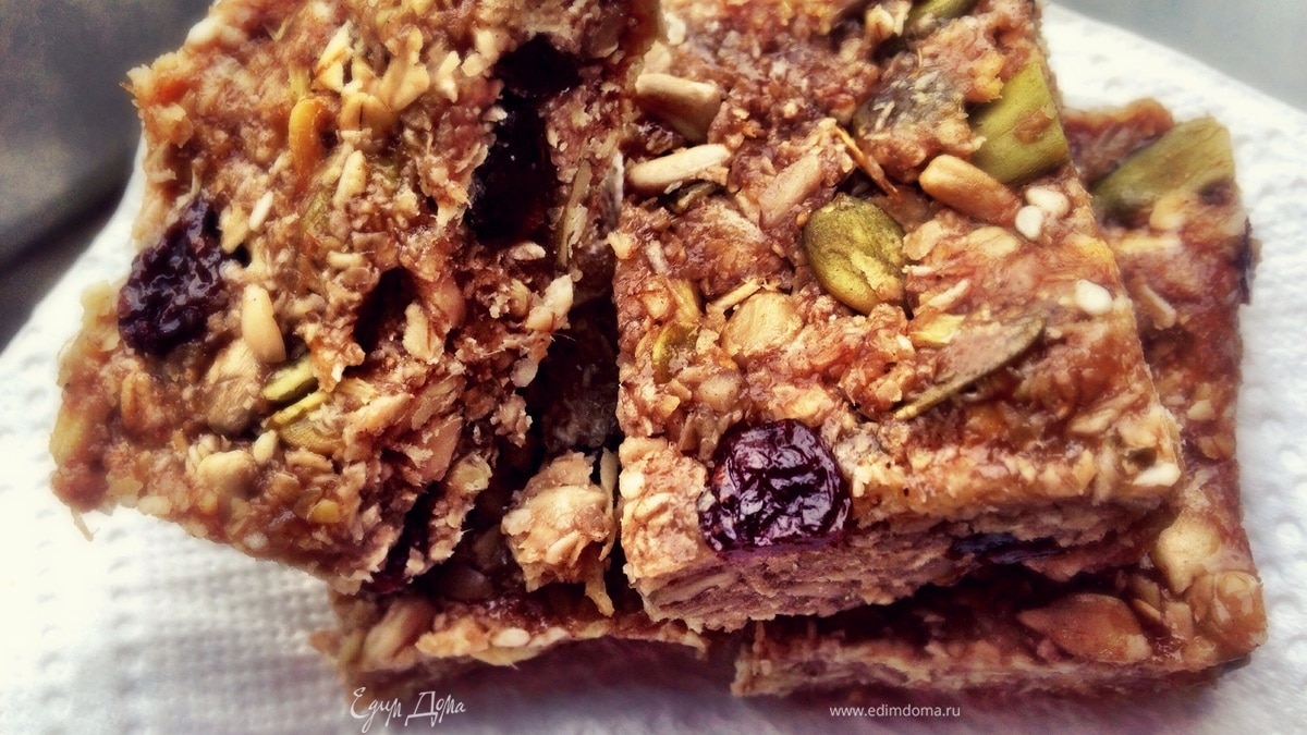 Все ингредиенты взаимозаменяемы, можете использовать вместо меда любой сироп, вместо тыквенных семечек и семечек подсолнечника, любые семечки на ваш вкус.