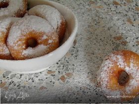 Если кто-то из Вас мечтает покушать и покормить своих нежно любимых родных прекрасными пончиками, но думает, что точно не сумеет их приготовить! Этот рецепт именно для Вас! Просто, с точными дозировками, а о вкусе ... даже не могу слова подобрать! Воздушные, пупырчатые, с хрустящей корочкой, настоящие пончики из нашего детства! Рецепт проверен очень многими годами, 100-процентный результат, мин нет, гарантия! Делать стараюсь редко... Совершенно невозможно остановиться, пока все не закончатся... А борьбу за видимость фигуры еще никто не отменял! Вот и экономлю на гастрономическом празднике! Конечно, можно это блюдо назвать и оладушками... и подавать с икоркой, малосольной рыбкой. Можно и как в Питере назвать пышечками. И жарить эти пышечки нежно вкладывая в каждый кусочек теста несколько ягодок. Например, вишню и подавать со сметанкой или взбитыми сливками. Можно и проделать в тесте пальцем дырочку посередине, вывернуть наизнанку и чуть растянуть... Получится весьма традиционный и главное очень привычный нам с детства пончик.... Но не всегда новичкам получается справиться с жидковатым тестом, а делать его гуще и более плотным, только ради привычной формы..., да и времени это занимает больше.... Ну не по-нашему это! Впрочем, я точно не настаиваю! Выбор всегда за вами!