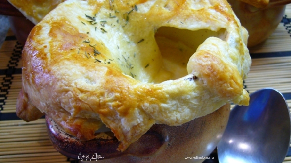 Рыбный велюте под крышкой из слоеного теста