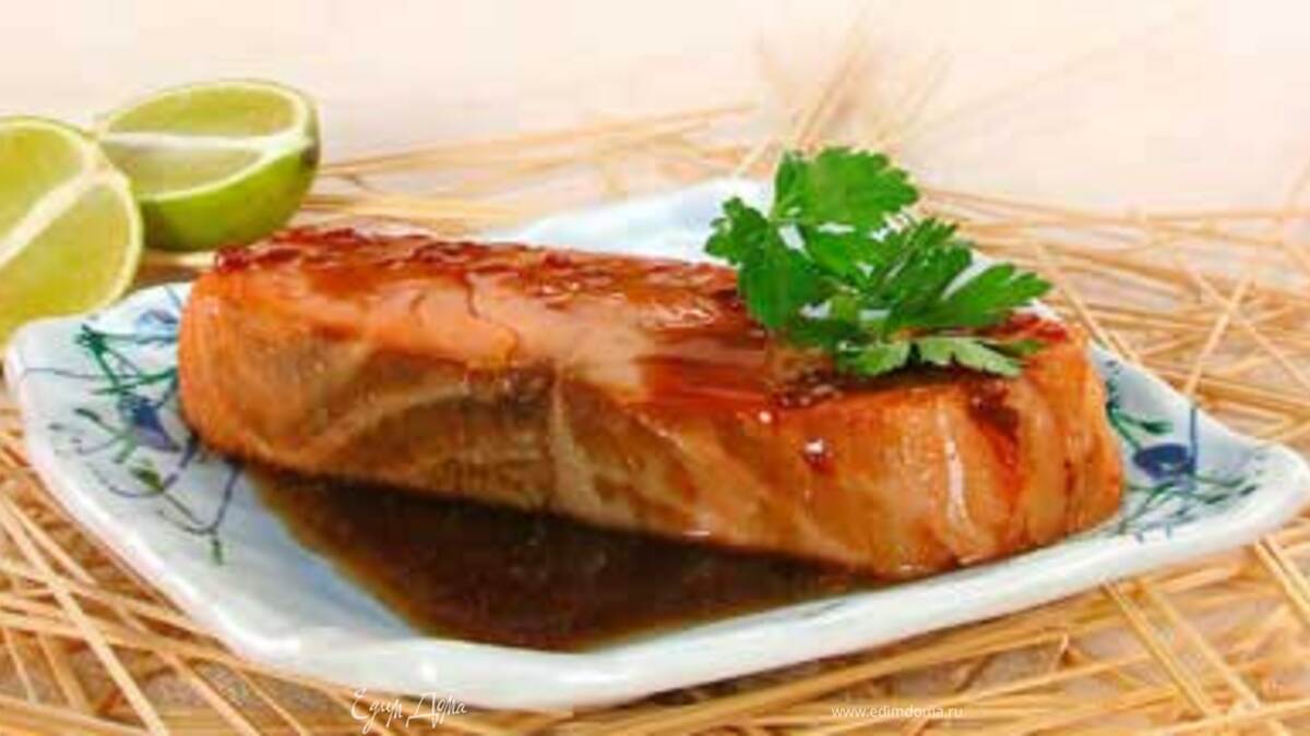 - ПодготовкаСмешать соевый соус с маслом, вином, добавить нашинкованный лук, имбирь, перец, соль и 5 столовых ложек воды. Залить полученным маринадом рыбное филе и оставить на 30 минут. Часть маринада слить в отдельную посуду, а оставшуюся часть разбавить 2 стакана воды и поставить тушить рыбное филе в прогретую до 200–220 °С духовку на 20–25 минут. Готовое филе выложить на тарелку. Вторую часть маринада довести до кипения, добавить разведенный небольшим количеством воды крахмал и проварить до загустения соуса. Перед подачей уложить филе на подогретую тарелку, полить соусом и оформить зеленью.