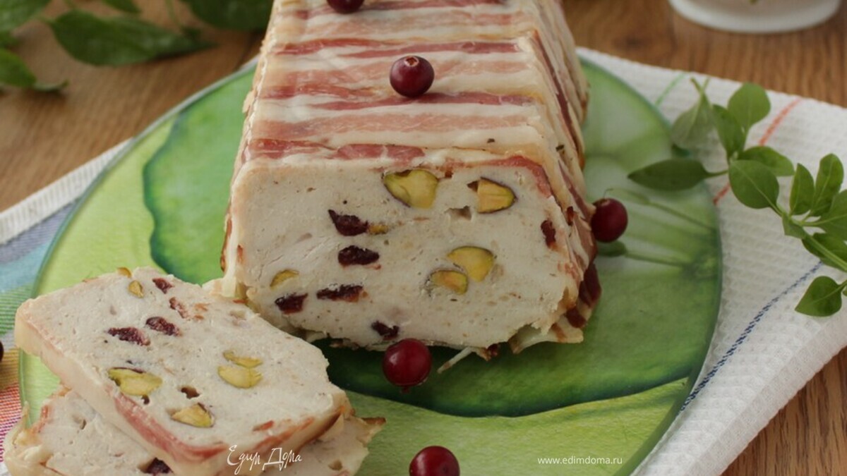 Куриный террин с вяленой клюквой и фисташками