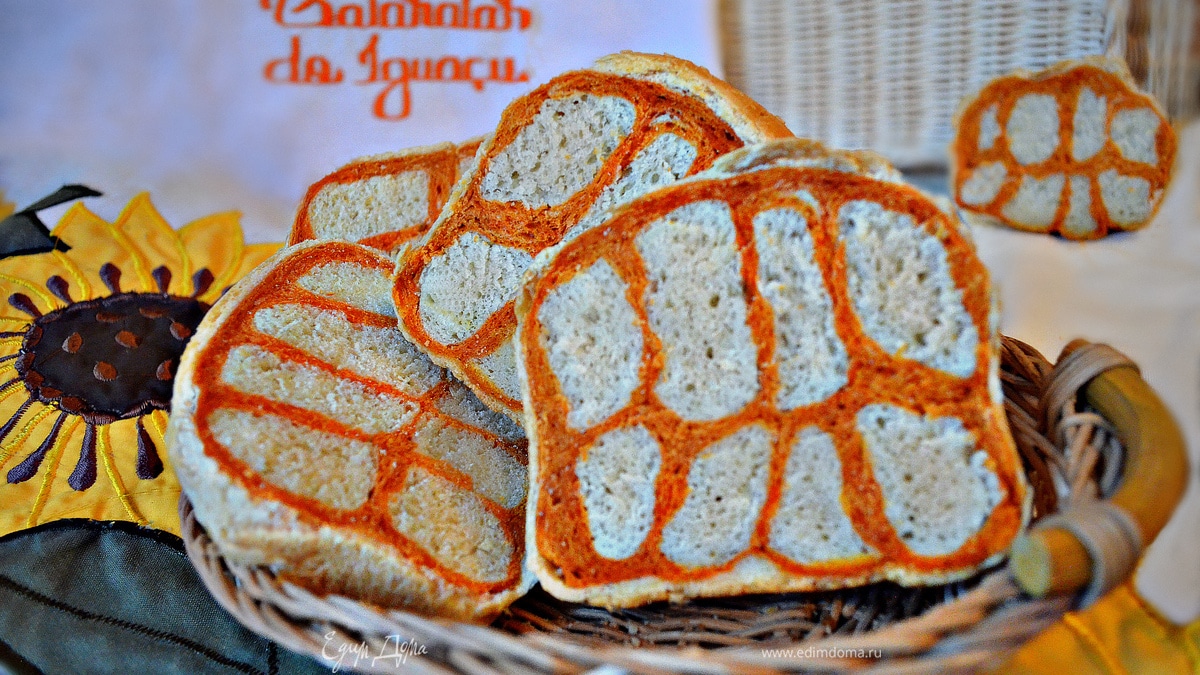 Когда я увидела рецепт этого хлеба, то просто загорелась идеей испечь его. Уж очень он привлёк меня своим внешним видом. Яркий, нарядный, он порадует ваших родных и близких, а также - прекрасно украсит праздничный стол и приятно удивит гостей! Отрадно, что и по вкусовым качествам этот хлебушек также хорош! На его приготовление требуется, конечно, больше времени, нежели обычно, но он того стоит! Приступим!