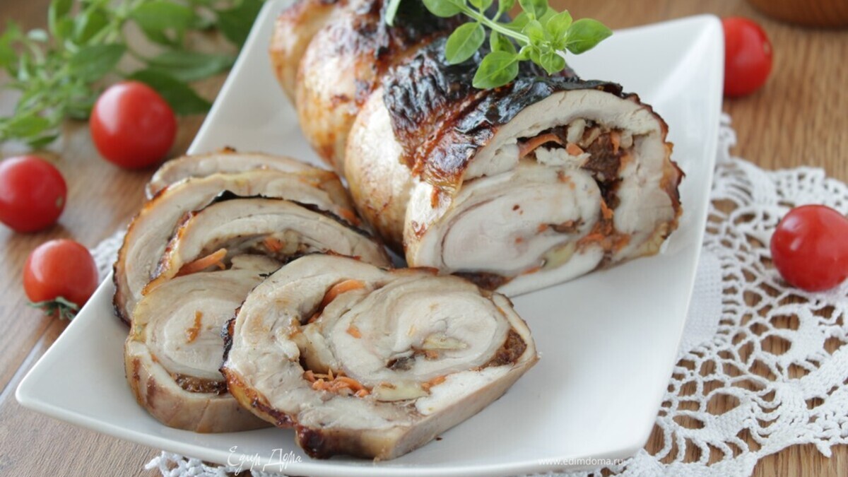 Куриный рулет с черносливом и грецким орехом