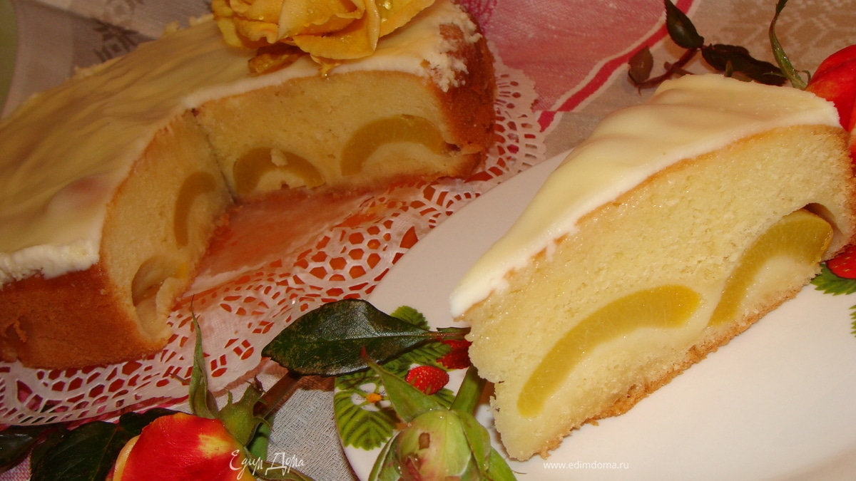Пирог с персиками и шафраном в сметанной глазури