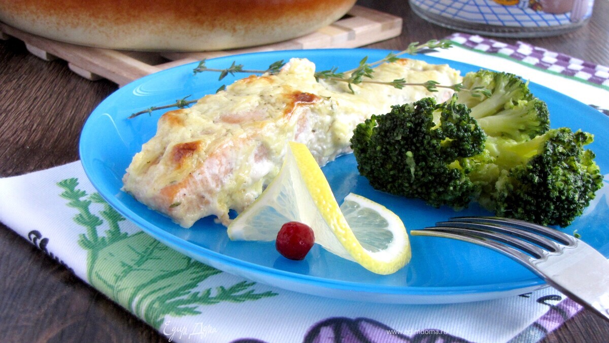 Филе лосося под сырно-горчичным соусом
