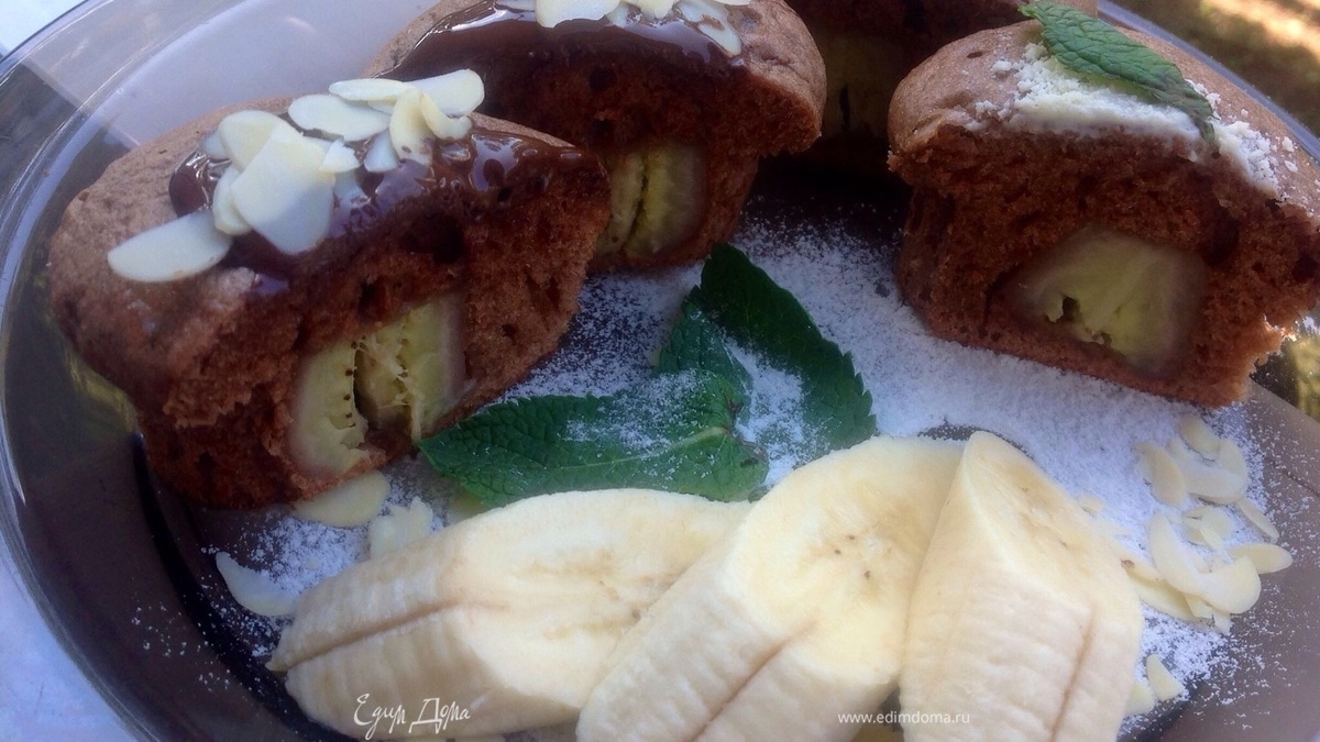 Выпекать 25-30 минут, зависит от духовки, остудить на решетке, чтобы дно маффинов было не влажным. - Шаг 5Расстопить черный шоколад на водяной бане, и полить им уже остывшие маффины, посыпать сверху лепестками миндаля. Приятного аппетита:-)