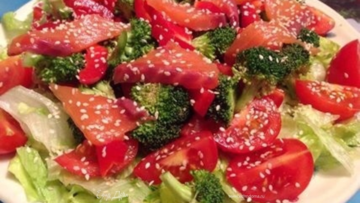 Салат с семгой и брокколи