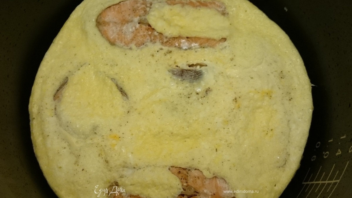 Смазываем маслом дно кастрюли мультиварки. Выкладываем ровненько кусочки рыбы. - Шаг 5