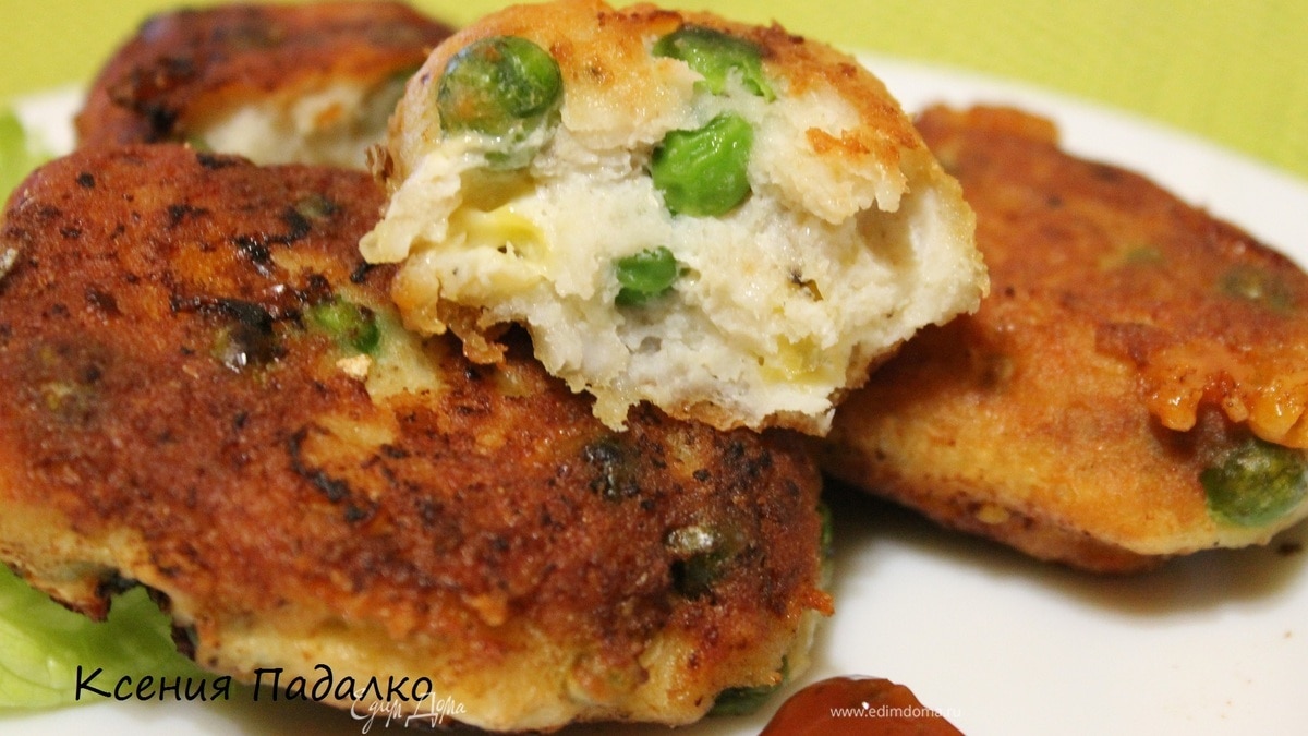 Котлеты из судака с зеленым горошком