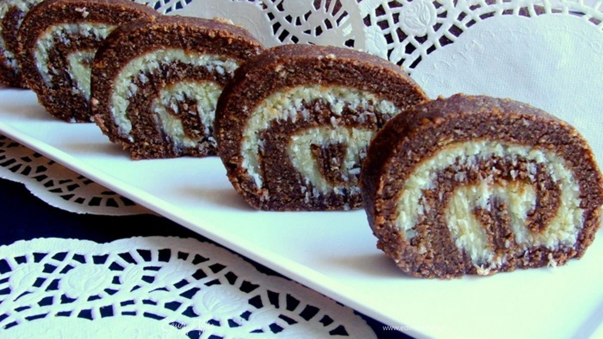 Шоколадно-кокосовый рулет без выпечки