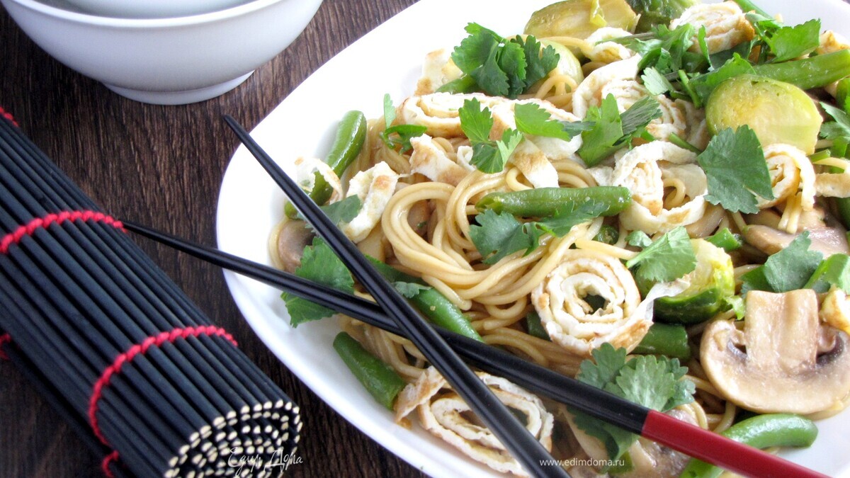 Очень вкуснаяя и сытная лапша по-японски с овощами, грибами и омлетом! Актуальное блюдо для осенней поры.![]()