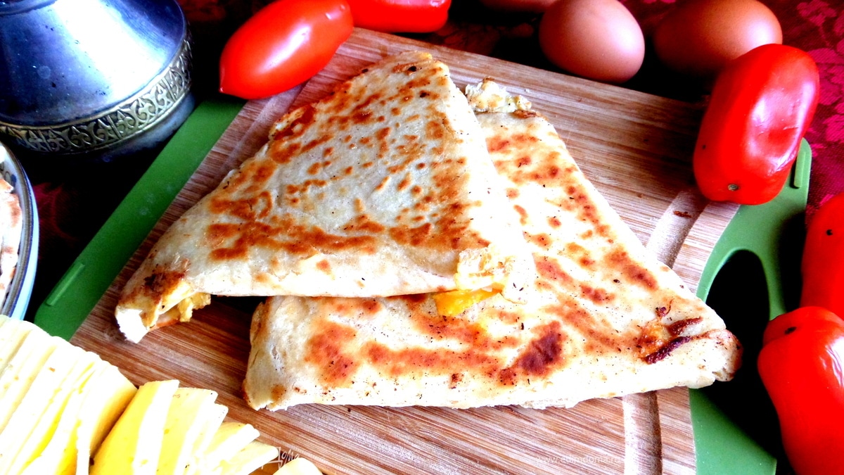 Вбиваем в центр (диаметр 20 см) яйцо и размазываем его (вилкой или силиконовой лопаточкой) по всей поверхности лавашика.