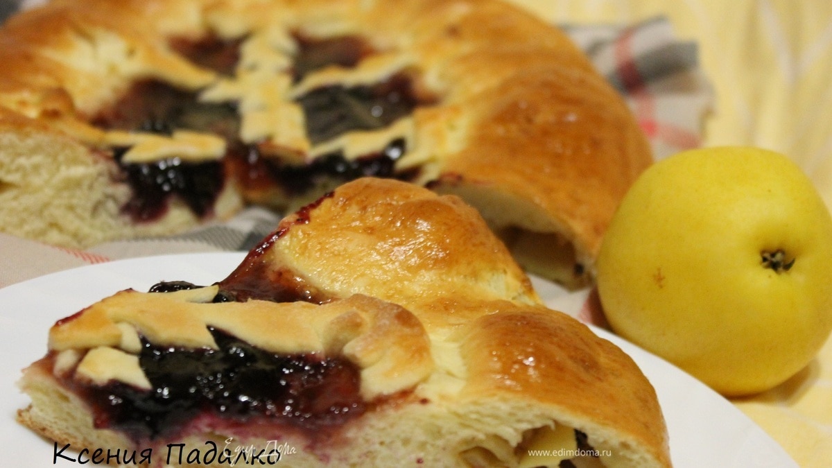 Из отложенного теста, делаем решетку, которую выкладываем поверх джема. Смазываем верх пирога желтком и ставим в заранее разогретую до 190 градусов духовку, на 30-40 минут. Когда пирог зарумянится, значит он готов. Приятного аппетита!!!