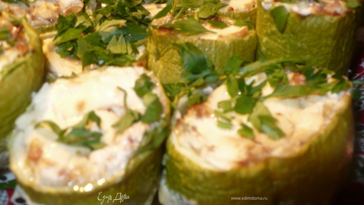 Кабачки, фаршированные творожным сыром
