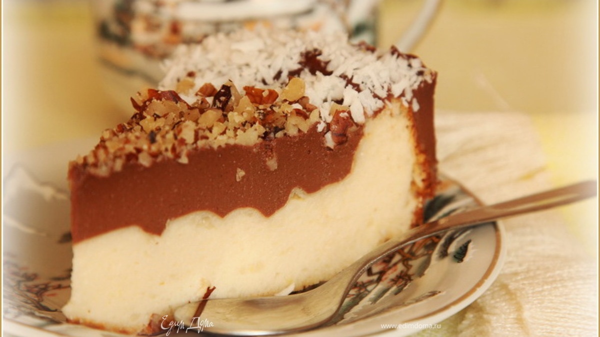 Быстро выливаем заливку на наш пирожок и оставляем остывать. Агар-агар очень быстро схватывается даже при комнатной температуре. Оставляем до остывания. Я сверху посыпала рублеными грецкими орехами и кокосовой стружкой (специально для Вики-Победа). После остывания освобождаем сырник от формы. Вот такой он получился. - Шаг 8