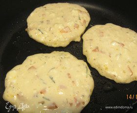 На сковороде разогреваем немного оливкового масла (около 1 ст.л.) и жарим наши оладушки. Тут в зависимости от размера, но примерно минуты по 3 с каждой стороны.