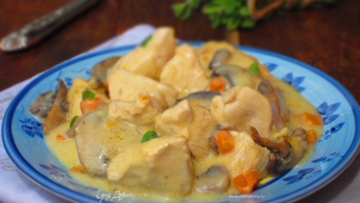 Филе индейки под сливочным соусом с грибами
