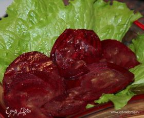 затем выкладываем в один слой промаринованную свеклу