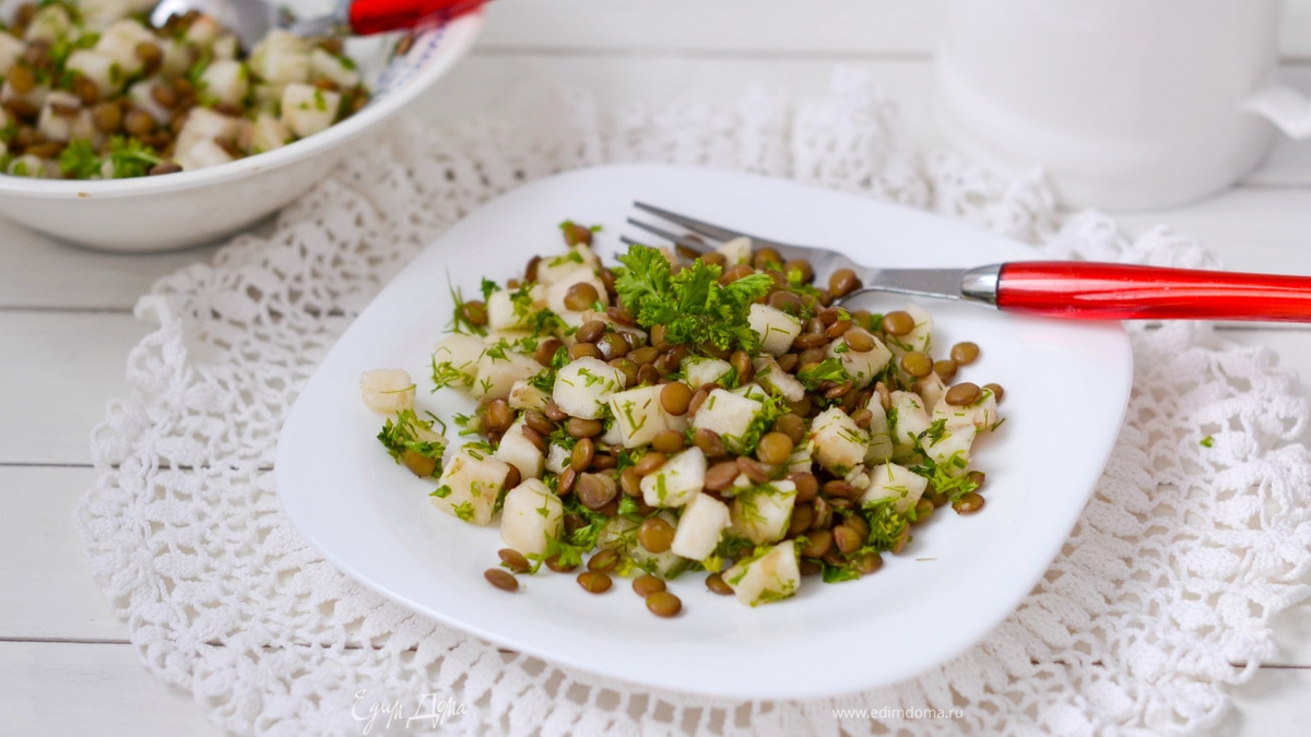 Салат из груши и чечевицы